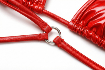 红色皮革材质,表面呈现出细腻且密集的不规则纹理,纹理线条深浅交错,形成自然的凹凸质感,整体色调均匀饱和,具有皮革特有的光泽感,背景为纯红色,无其他元素干扰,展现出皮革材质的经典与高级质感。