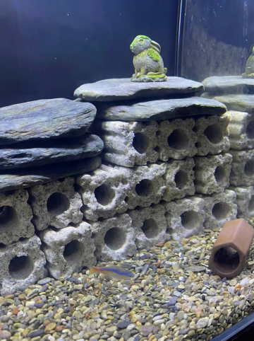 拟人风小鼠凝视玻璃鱼缸,水彩质感的鱼儿游动,重拟物风实景呈现清新可爱感,营造舒适温馨氛围。