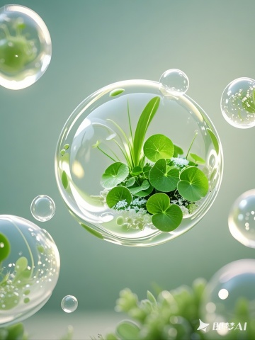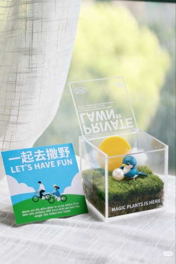清新绿意中,3D玻璃风瓶身置于草丛礼盒,轻拟物设计融合虚拟自然,简约主义演绎清爽舒适感。