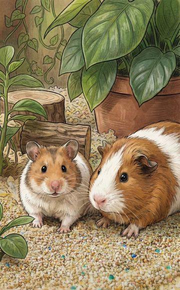 可爱感十足的拟人化豚鼠插画,采用扁平风设计,展现多种表情与情绪,搭配卡通风格背景,充满童趣与节日氛围。