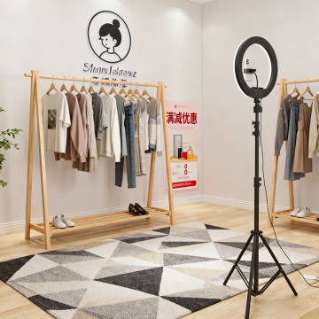“直播实训 + 中职生在校园直播间练习美妆带货 + 纪实风格 + 学生主播手持美妆产品讲解,搭档场控调试补光灯,背景货架摆满美妆小样,手机架固定直播镜头”