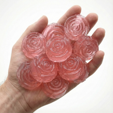 一颗饱满圆润的心形,采用柔和的渐变粉色调,从中心的深粉向边缘过渡为浅粉,表面光滑细腻,带有轻微的高光和柔和阴影,呈现出半透明的果冻质感,整体风格简洁可爱,背景为纯白色,营造出清新甜美的氛围。