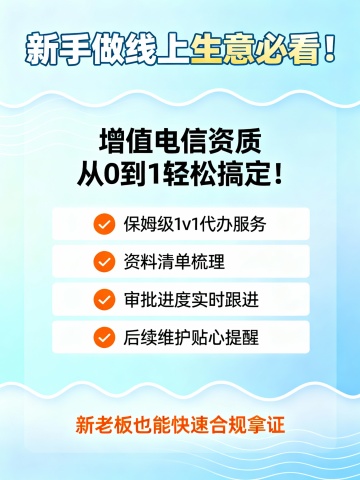文案:增值电信资质办理终结者! 不管是业务类型混淆, 还是内容流程不清楚, 人员配置难题, 我们专属顾问一对一解决, 帮您全流程代办省心省力。生成封面图片