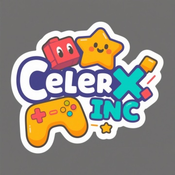 帮我生成一个游戏公司logo,游戏公司名字叫:CELERX INC,要求趣味性,比较卡通,有游戏元素,比较吸引人。简约