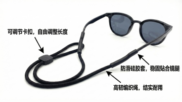 将图片一中的眼镜的链子换成图片二中的链子,图片中的链子细小点,保持图片一中眼镜链子的形状