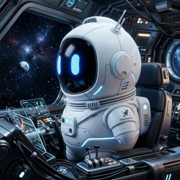 未来感十足的3D风格宇航员,融合科技与酷炫元素,金属质感搭配霓虹蓝光,置身于虚拟现实太空舱内,尽显科幻魅力。
