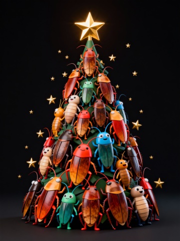 3D重拟物风格圣诞树由百元美钞堆叠而成,金属质感星顶闪耀,拼贴式货币飞舞,奢华与商务气息交织,冲击力十足的节日视觉符号。