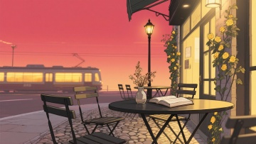 二次元,城市街道,细节丰富,暖黄色,氛围回忆,生成2张,不要人,4k