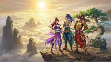 梦幻古典中式插画,仙人御剑飞行,云海缭绕,水墨风格渲染虚拟现实。