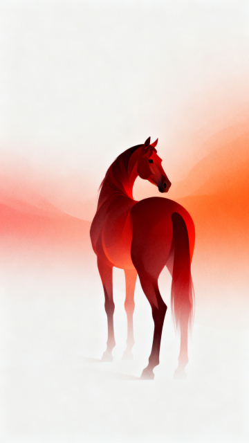抽象感与剪纸风融合,以红橙渐变勾勒马首轮廓,融入几何线条与果实元素,展现唯美优雅的插画风格,传递新春祥瑞之意。