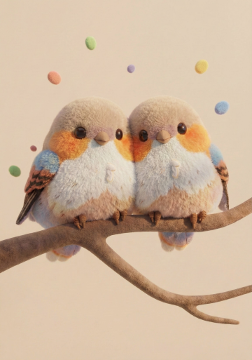 3D卡通风格,拟人小鸟手捧心形花,梦幻场景,可爱温馨。