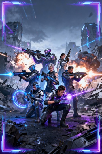 赛博朋克风未来都市,霓虹光影交织,粒子流缠绕高楼,飞行器划破云雾,虚拟现实与科技感碰撞,冲击力十足。