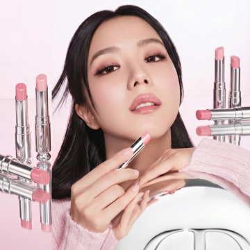 液态风唇釉,重拟物设计,光影交错中展现奢华质感,柔和清透的粉色调搭配现代感几何瓶身,尽显时尚与高级。