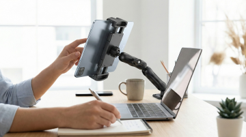 以图中的汽车方向盘桌为元素,多功能汽车座椅支架托盘,可用于用餐和工作,写字,物体主体特征不变,设计6张跟汽车方向盘桌有关的图,可以加一些西班牙语的文案,比例 「16:9」