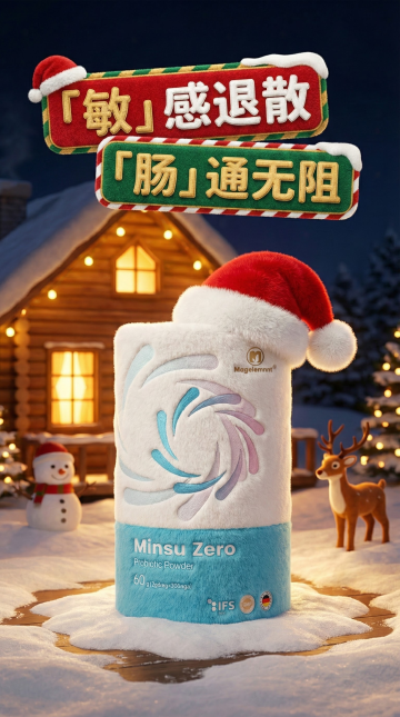 主体是圣诞老人背着礼物袋坐在雪橇上穿梭在飘雪圣诞小镇夜空(房屋覆雪、暖灯闪烁、行人漫步、积雪树木)的背影,袋子露出参考图产品的一部分,突出商品,3D写实效果,整体色调温暖。