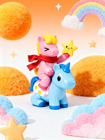 软3D风卡通形象,甜蜜可爱,塑料质感包装,彩虹色系设计,充满童趣与节日氛围。
