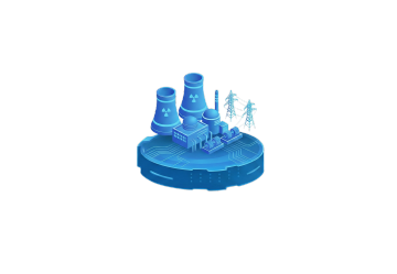 等轴视角的 3D 数字孪生工业场景,画面中心是一台未来感的电脑主机/控制中枢,显示悬浮的 AI 算法代码界面和数据云标识;周围环绕多个象征业务领域的 3D 模块:机械臂+输送平台(代表智能制造)、履带式特种机器人+水池反应堆模块(核电与异物检测)、医疗十字与手术监护界面模块(智慧医疗)、城市建筑+管道检测模块(城市排水识别)、摄像机/传感器模块(AI感知)。所有模块通过发光的数据线连接,构成信息中