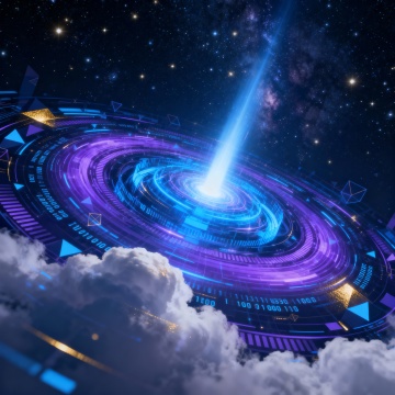 深蓝色背景下的赛博朋克风格3D渲染科技场景,画面顶部布满由0和1组成的二进制数字流,呈现出悬浮的粒子效果,中央有一道明亮的蓝色光束从上方垂直射下,照亮下方由蓝色发光线条构成的电路板纹理地面,地面上布满整齐排列的发光电路纹路和数字代码,整体光影效果具有强烈的纵深感和空间感,光线带有柔和的光晕和渐变,营造出神秘而充满未来感的科技氛围,色调以深蓝和亮蓝为主,色彩和谐统一,画面简洁大气,充满科技感和设计感。