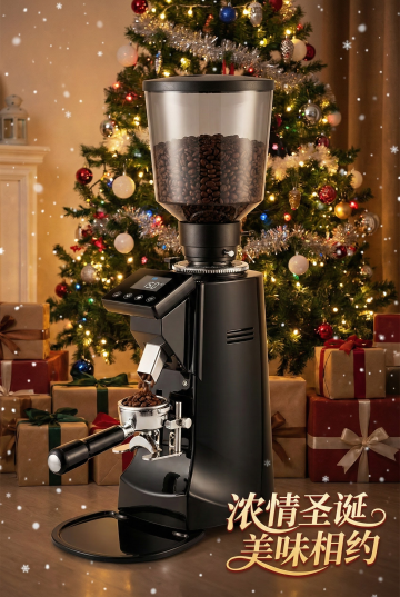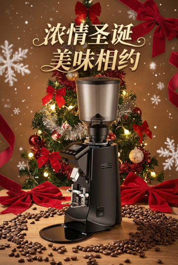 帮我生成2:3的比例的咖啡磨粉机的海报图 里面要有浓厚的圣诞氛围,突出咖啡磨粉机,配文字:浓情圣诞 美味相约 生成三张电商海报图任我挑选