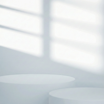 极简风格白色圆形台面,光滑细腻的哑光白色表面,简洁的圆柱形结构,顶部平整边缘圆润,纯白色背景,柔和均匀的自然光从顶部偏左照射,形成轻微的浅灰色投影,整体设计简约干净,无任何多余装饰,突出台面主体的纯粹形态与质感,配色方案极致简单,仅有白色与浅灰色阴影构成。