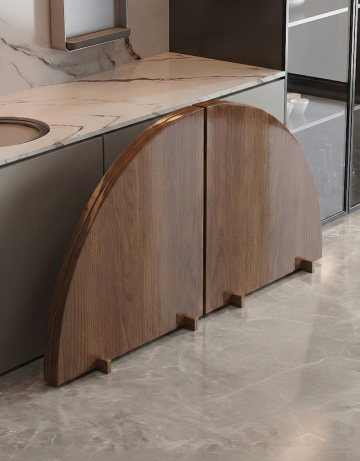 现代简约风边柜,融合性冷淡与轻拟物设计,弧形玻璃门与柔和配色营造温馨舒适感,搭配抽象画作与自然元素,展现文艺氛围。