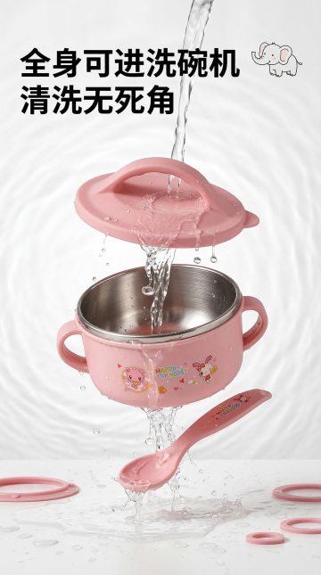 保留图1的所有产品细节与功能标注,把图1的背景换成图2的杏粉色