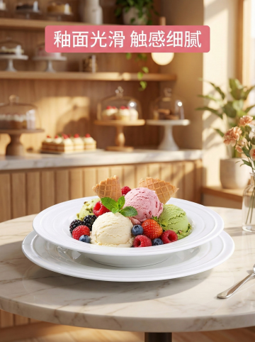清新水彩风,草莓冰淇淋点缀绿叶,池畔实景带来甜美舒适感。