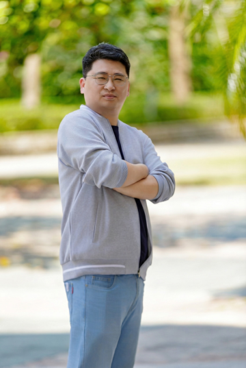 男生白色衬衫蓝底证件照