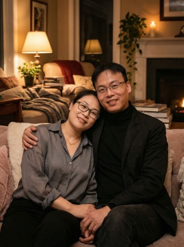 旅行主题摄影风格,日落时分的壮丽山景,远处雪山峰顶被金色霞光映照,云层呈现橙红与淡紫渐变,中景层叠的山峦覆盖着深色植被与金色阳光的交错光影,前景中两个背对观者的人物坐在露营椅上,一人戴着宽檐帽举手轻触同伴手中的暖黄色露营灯,人物轮廓被逆光勾勒出金色边缘,整体画面温暖治愈,充满探索与陪伴的旅行氛围,采用写实摄影质感,自然光影过渡柔和,色彩和谐统一,构图遵循三分法,天空、山峦与人物形成清晰视觉层次,突出旅行中的自然奇观与人文温度。