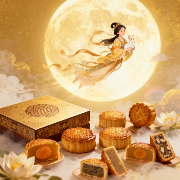 中式感月饼,甜美可爱,国潮风设计,轻拟物手法,中秋佳节氛围浓厚。