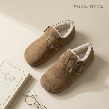 纯色背景,居中短句: 「我们相信,鞋是身体的文库, 每一步都该写下舒适与自由」。