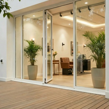 现代极简风格的客厅场景,以浅灰色调为主的现代家具布置,画面聚焦于铺在浅灰色瓷砖地面上的浅灰色条纹地毯特写,地毯表面有细腻的竖条纹纹理和柔软的编织质感,占据画面下方大部分区域;背景中可见浅灰色布艺沙发,搭配几个同色系的靠垫,沙发旁有一个圆形金属边框的小茶几,靠墙处有一个简约的灰色搁板,上面放置一个小型装饰画框;右侧是大面积的落地窗,透过轻薄的白色纱帘洒入明亮柔和的自然光,光线在地毯和地面上形成自然的光影过渡,窗外可见模糊的绿色植物,整体营造出宁静、整洁、高级的现代家居氛围,空间感开阔,线条简洁,色彩统一和谐,具有清晰的视觉层次和舒适的居住感。