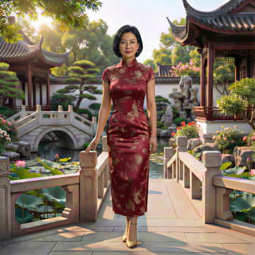 中式复古风旗袍,融合国潮与面料肌理,展现优雅文艺气质,实景拍摄呈现温婉东方之美。