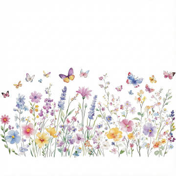 一组六只形态各异的水彩风格蝴蝶,以柔和的绿色、黄色、橙色、红色、紫色和靛蓝色为主色调,翅膀边缘带有细腻的白色斑点和渐变晕染效果,背景为纯净的白色,整体呈现出清新自然、轻盈灵动的艺术氛围,蝴蝶的姿态自然舒展,彼此之间保持适当的间距,形成和谐的视觉平衡。