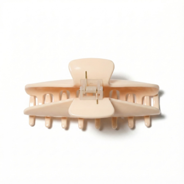 将图中的发夹做一个细节主图,该发夹是抓夹,材质是醋酸材质,背面是醋酸材质的纹理与颜色是玳瑁色,保持产品的形状,配合小图标说明