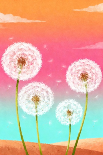 水彩插画风,清新梦幻的春日景象,绿意盎然,花影婆娑。