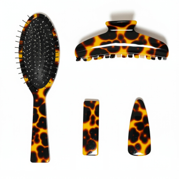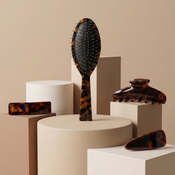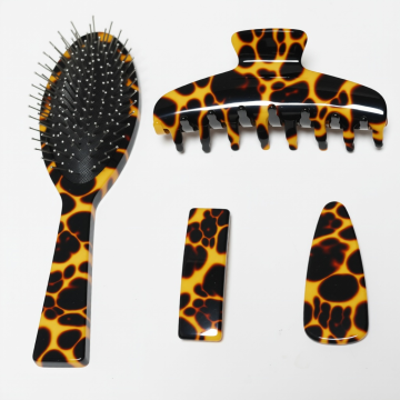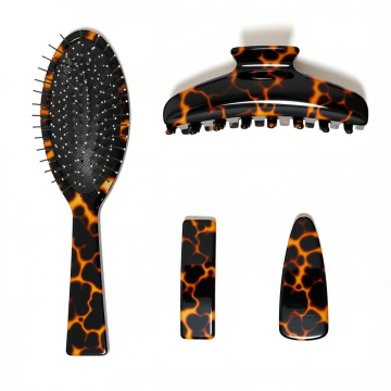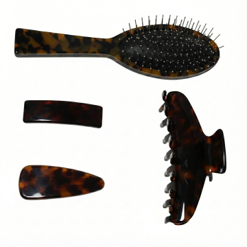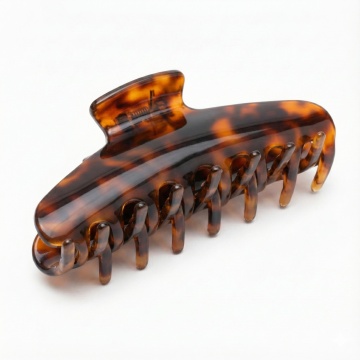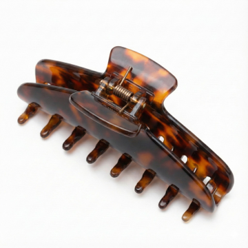 将图中的发夹做一个细节主图,该发夹是抓夹,材质是醋酸材质,背面是醋酸材质的纹理与颜色是玳瑁色,保持产品的形状,配合小图标说明