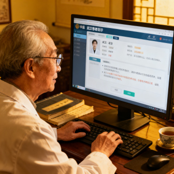 以“康雅Ai健康小屋”为牌匾,进店内首先第一个区域是前台接待区,前台旁边有两张圆桌与桌椅,有位接待人员在前台看电脑;店内第二个区域为AI检测区,设置智能检测设备与座椅,旁边墙上有个“康雅云门诊”的大屏;第三个区域有舱体理疗区域,老年人可躺着体验设备理疗;第四个区域是会议室。整体风格清新典雅,适合健康行业。