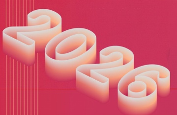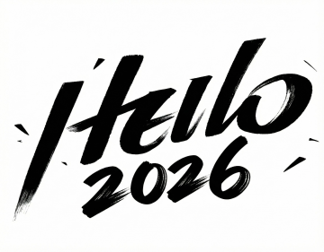 红底白字双色设计,大字风手写体搭配烟花元素,喜庆感十足,印刷风呈现新年祝福,迎接2026。