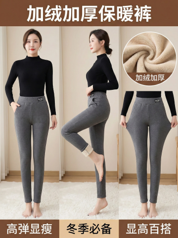 生成750*1000的尺寸,居家场景,脚下有地毯,模特换脸,加入 加绒 保暖 高腰 显瘦等卖点
