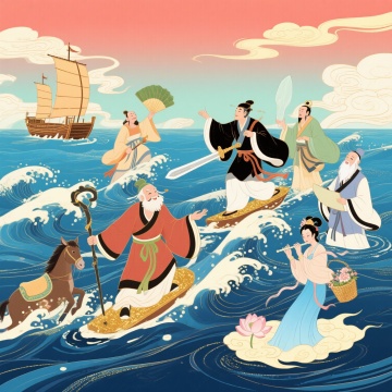 结合中华文化风格模型,生产一张八仙过海的图片。