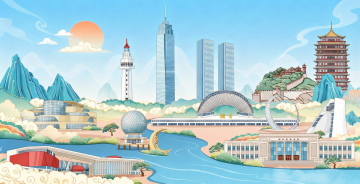 国潮风插画,融合中式建筑与现代城市,拟人化玉兔持灯笼与月饼,刺绣质感呈现喜庆氛围,卡通可爱风格传递中秋佳节温情。