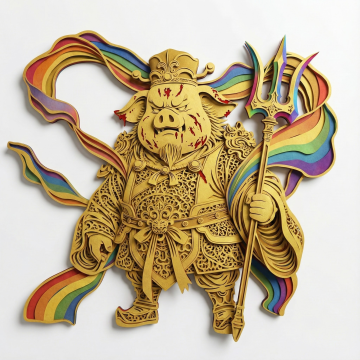 参考图二剪纸风格,将图一角色转为图二剪纸风格