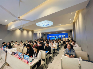未来感科技界面,3D玻璃风设计,悬浮透明面板环绕中央主屏,粒子光效流动,虚拟现实交互体验,清透蓝调视觉。