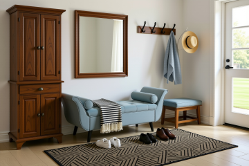 你好,请根据图二产考图给图一生成一张在门口换鞋处的场景图