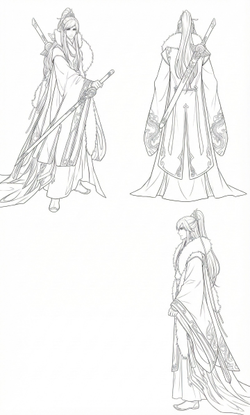 古典中式插画风,水墨山水背景,人物手持折扇,尽显雅致韵味。