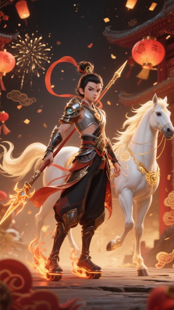 中式古典美学与神秘神圣感交融,鎏金金属风铠甲搭配青龙环绕,光影流动中展现梦幻3D插画风,虚拟现实般的体积感与重拟物设计,尽显东方神话史诗气魄。
