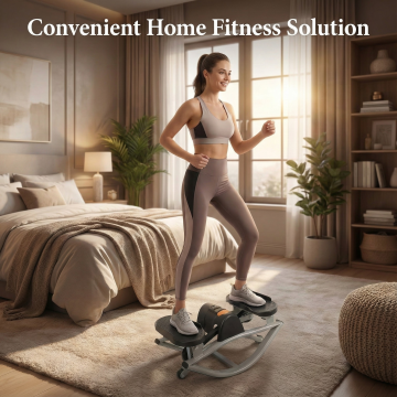 这款商品为左右摇摆踏步机,家用健身踏步机一一带数字显示屏,腿部与臀部锻炼器械,迷你款适用于家庭、公寓、宿舍或办公室,销售到美国,语言是英文,帮我生成一组亚马逊套图。卖点是:护膝黑科技:独家横向摇摆模式,相比传统踏步机减少膝盖冲击。 省心省空间:免安装,开箱即用;紧凑设计,客厅角落即可摆放。 智能高效练:15分钟全身锻炼,电子屏实时反馈步数、卡路里,激励每一天。风格是高级感