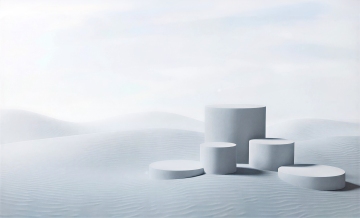 一张写实风格的白色几何展示台图片,画面中由三个不同高度的白色几何体块构成展示平台,呈现出简洁的立体结构。采用柔和的自然光照明,光线从左上方照射,在几何体块表面形成自然的明暗过渡和清晰的投影,展现出光滑细腻的白色哑光材质质感。整体构图简洁大方,以纯白色为基调,背景为纯白色,突出展示台的立体形态和空间感,营造出简约、现代、专业的氛围,适合作为产品展示的舞台背景。