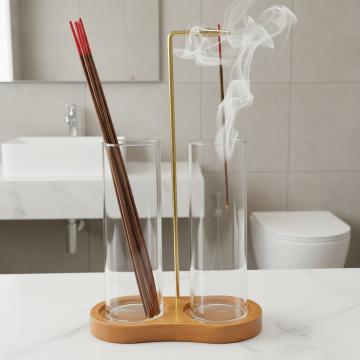 清新自然的浴室场景,融合木雕风与玻璃风材质,简约主义设计中透出柔和质朴感,性冷淡风色调营造舒适氛围,轻拟物风格提升实景感。
